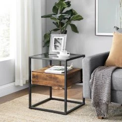 VASAGLE Nachtkonsole »LET04BX«, Nachttisch, Beistelltisch, Glastisch mit Schublade, vintage