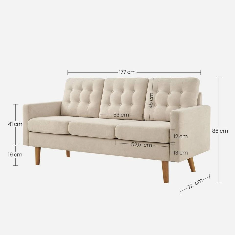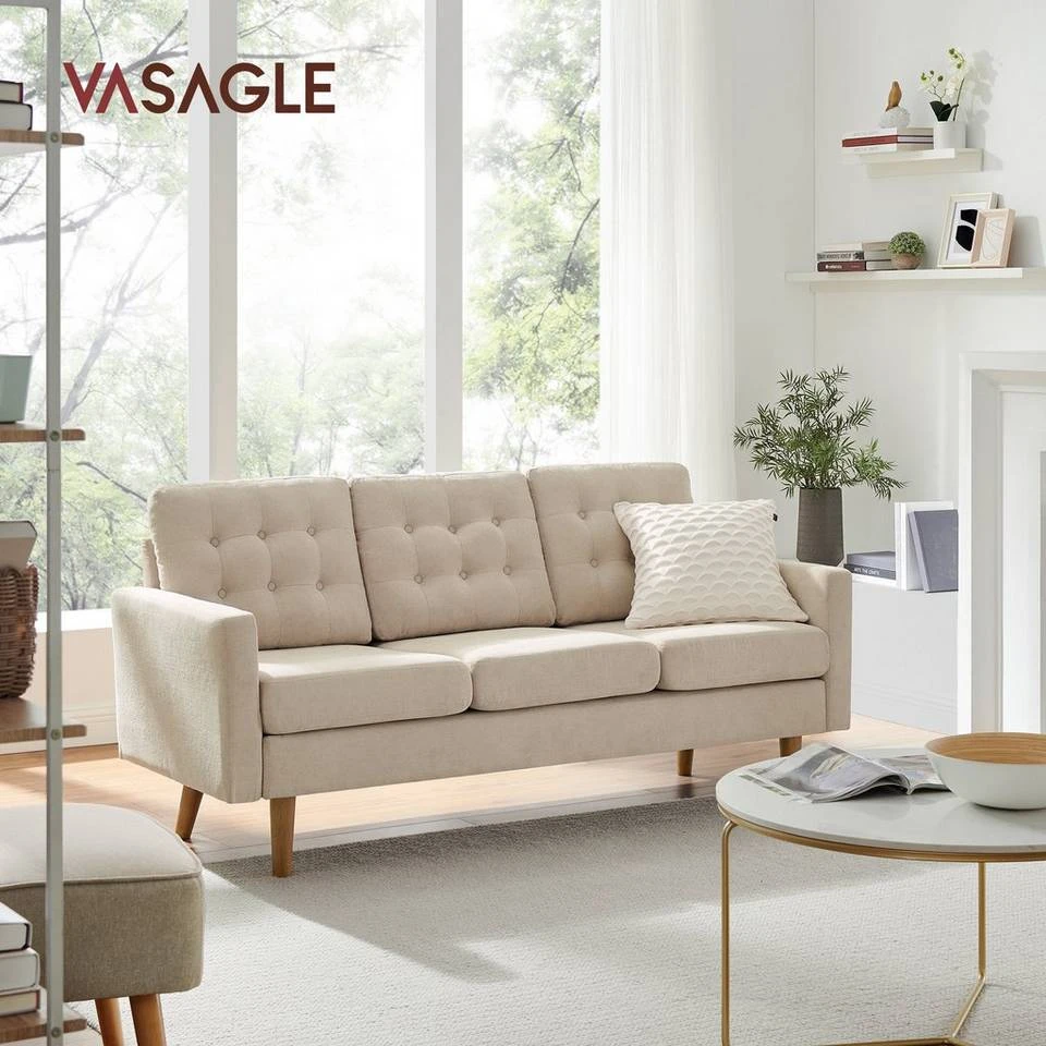 VASAGLE 3-Sitzer »LCS101«, Couch fürs Wohnzimmer, Polyester, 177 x 72 x 86 cm (L x B x H) Beige, Grau