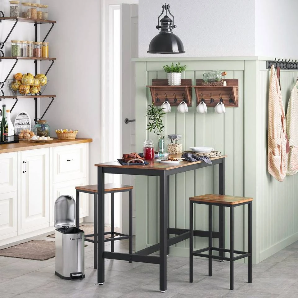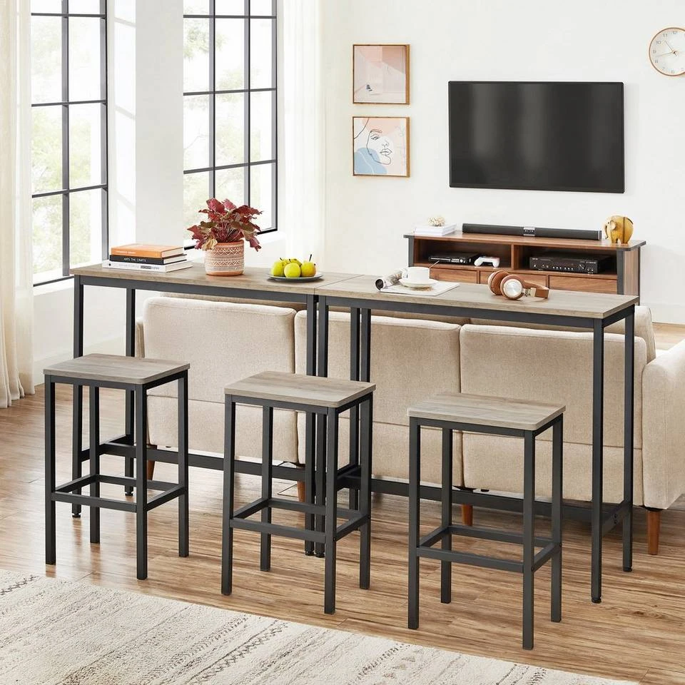 - PERFEKTE PASSUNG: Die beiden 40 x 30 x 65 cm großen Barstühle passen perfekt unter alle Bartresen in Standardgröße, sodass das Set extrem platzsparend ist