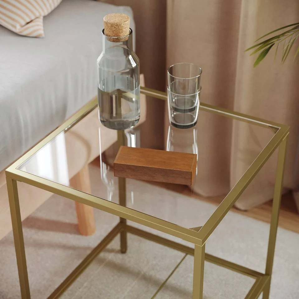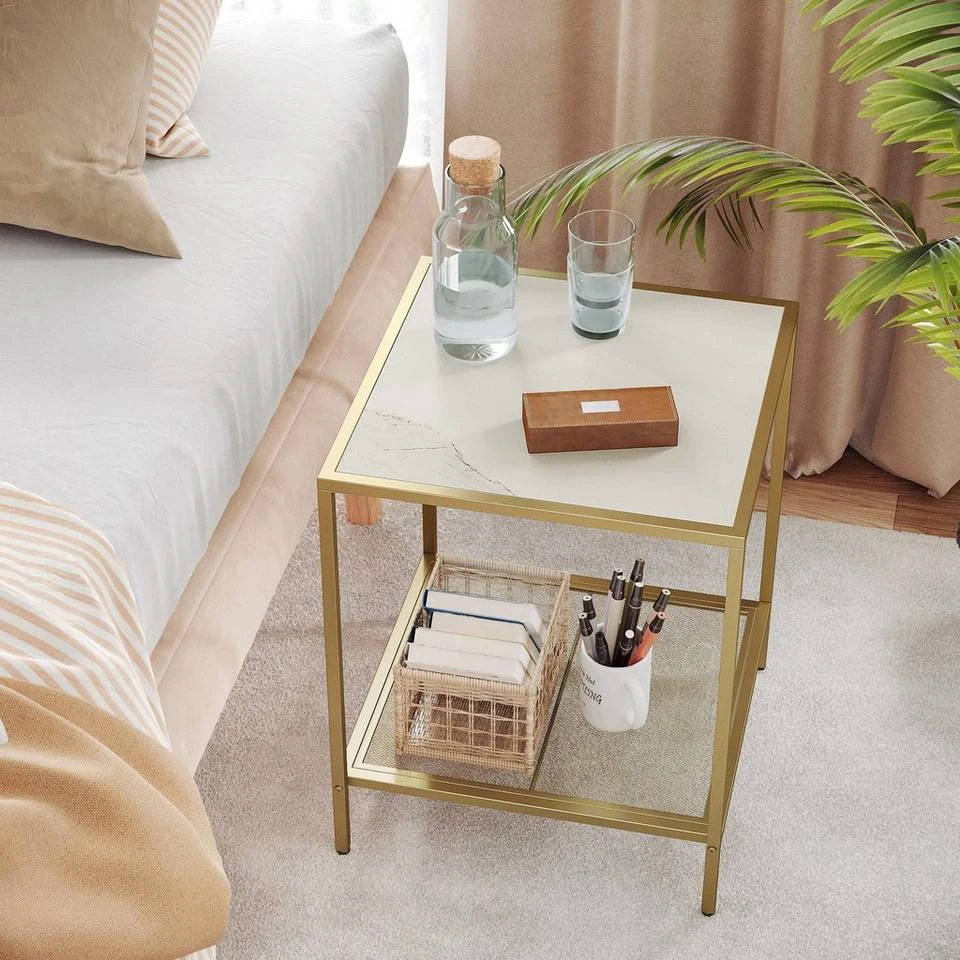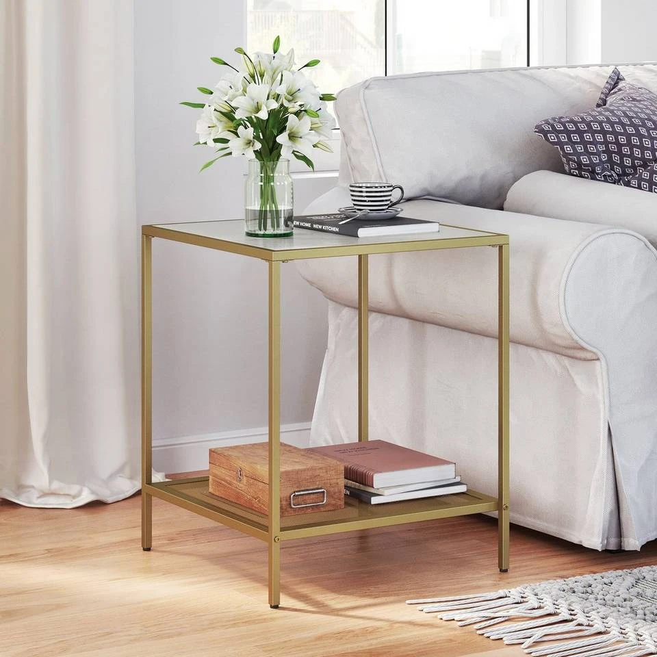 VASAGLE Beistelltisch »LGT030W01 LGT030A01«, Couchtisch mit 2 Ebenen, aus Hartglas, Gold-Transparent