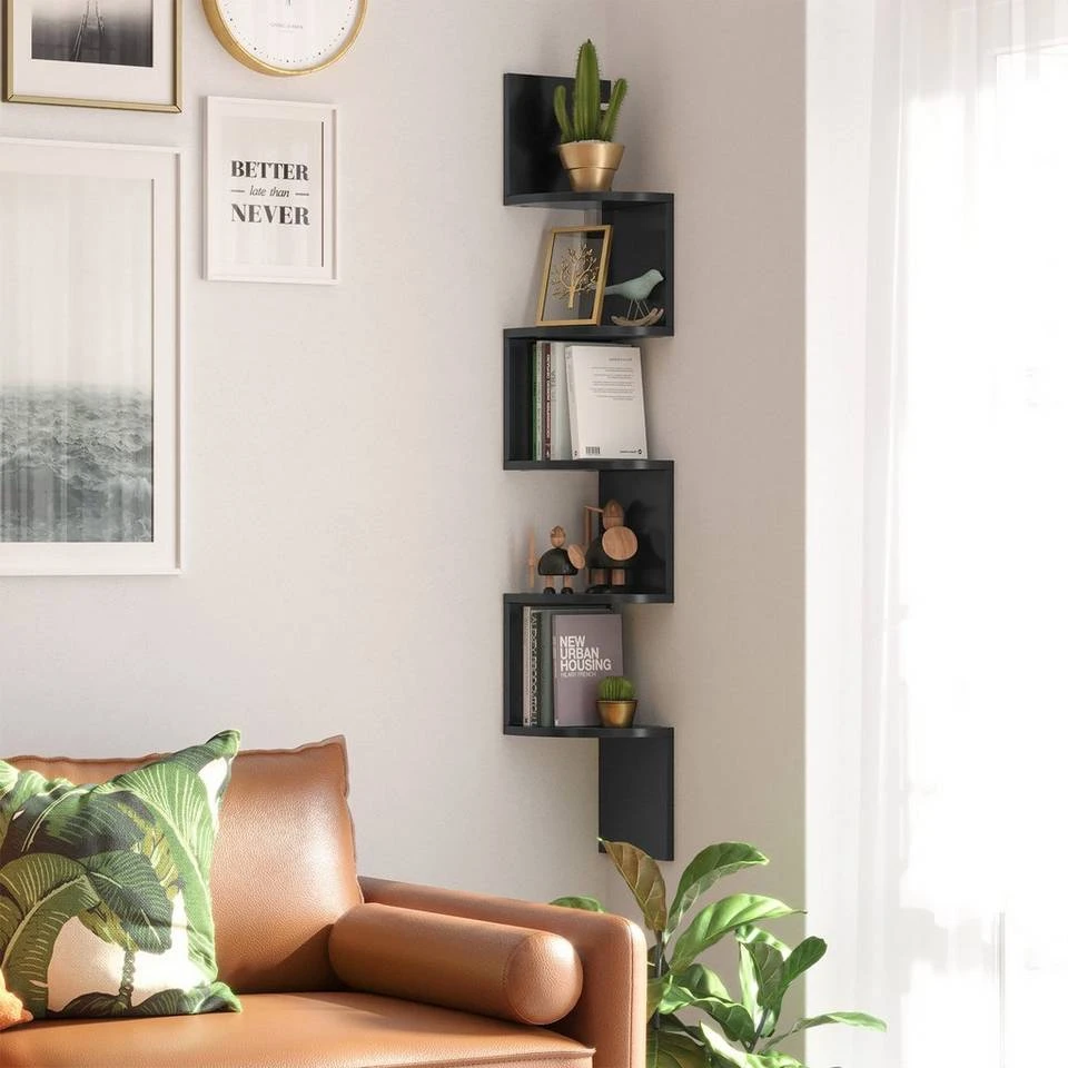 - ELEGANTES ECKREGAL: Ordnen Sie all Ihre Bücher, präsentieren Sie Ihre Lieblings-Dekostücke oder nutzen Sie das Wandregal selbst als innovatives Dekorationsaccessoire