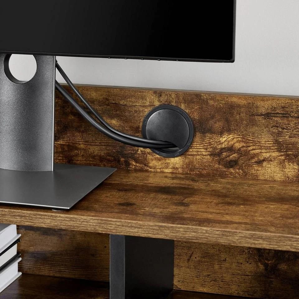 - Heben Sie Ihren Bildschirm auf Augenhöhe, indem Sie ihn auf die erhöhte Ablage stellen. Stromkabel können ordentlich durch das Loch an der Rückseite geführt werden