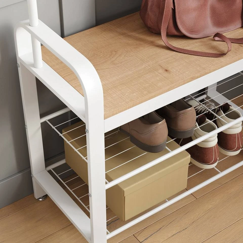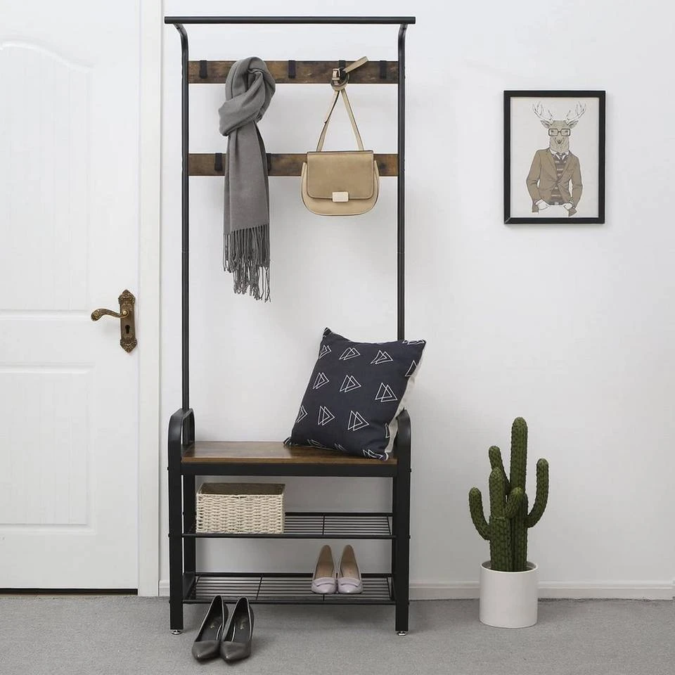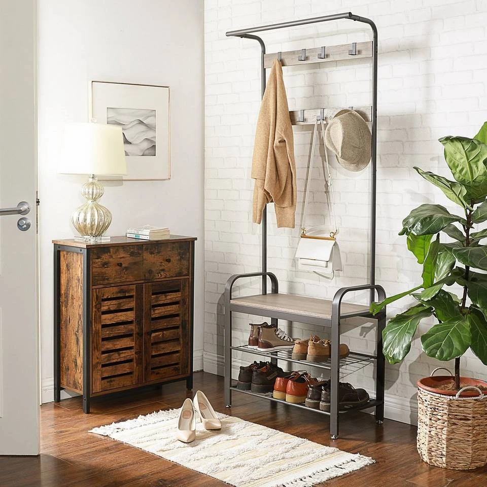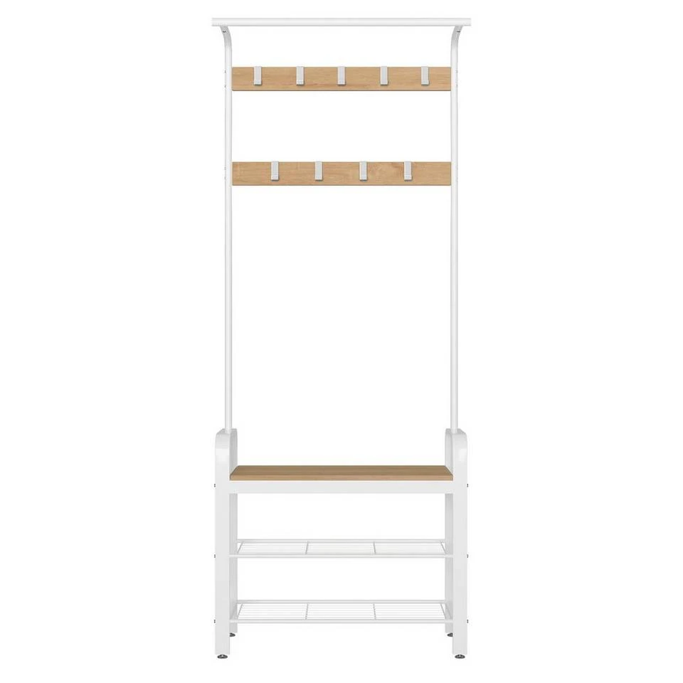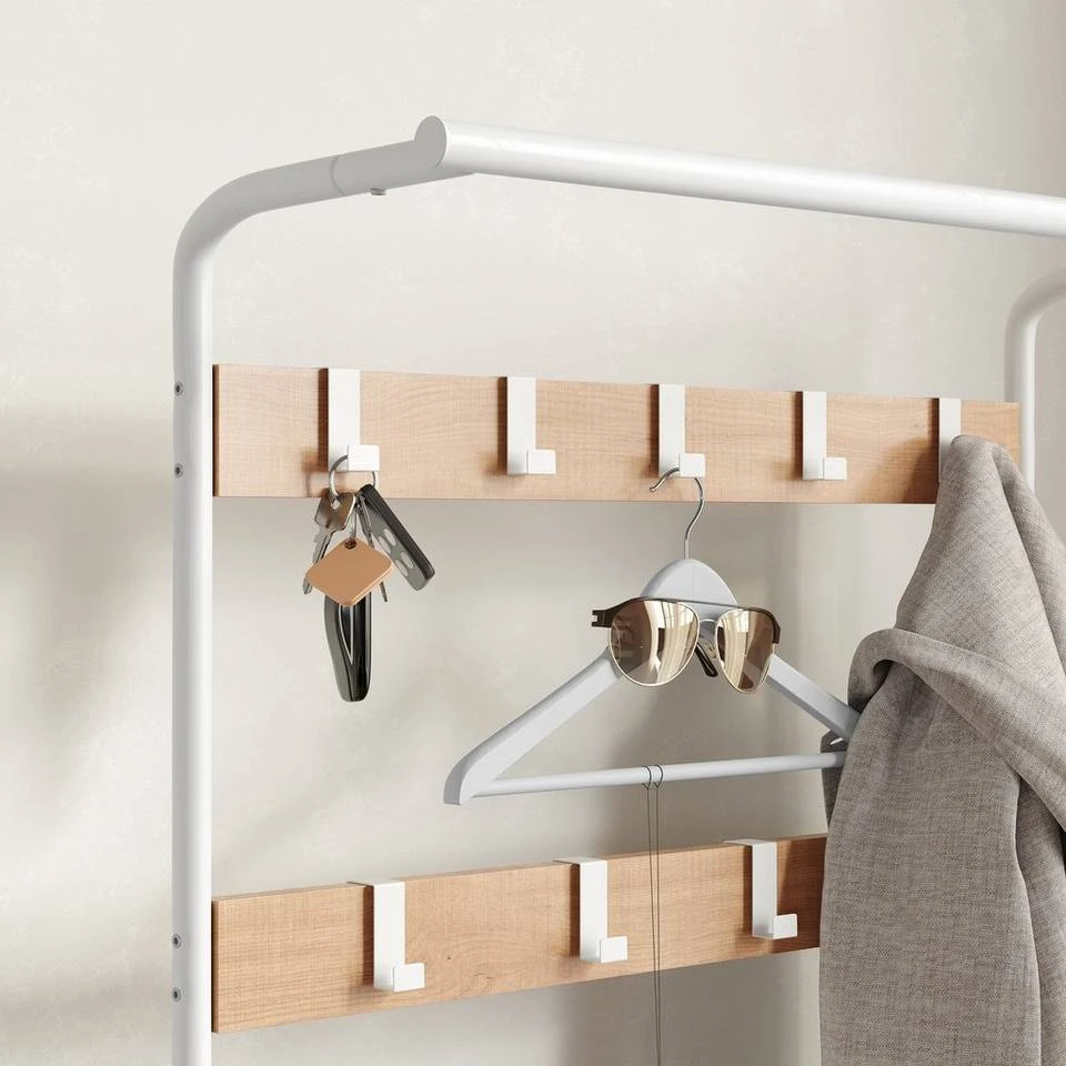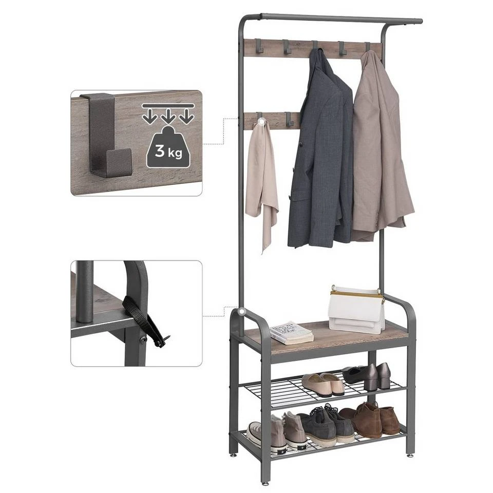 VASAGLE Garderobenständer »HSR40B«, Kleiderständer mit 9 Haken, Schuhregal mit 3 Ablagen und stilvollen Griffen, 183 cm hoch, Industrie-Design Grau, Vintage, Weiß