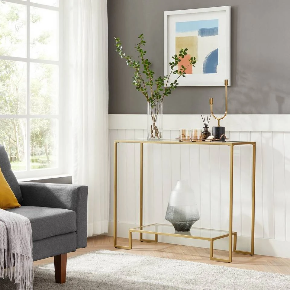 VASAGLE Konsolentisch »LGT023A01«, Beistelltisch, Stahlgestell, 100 x 35 x 80 cm, Wohnzimmer, goldfarben