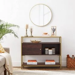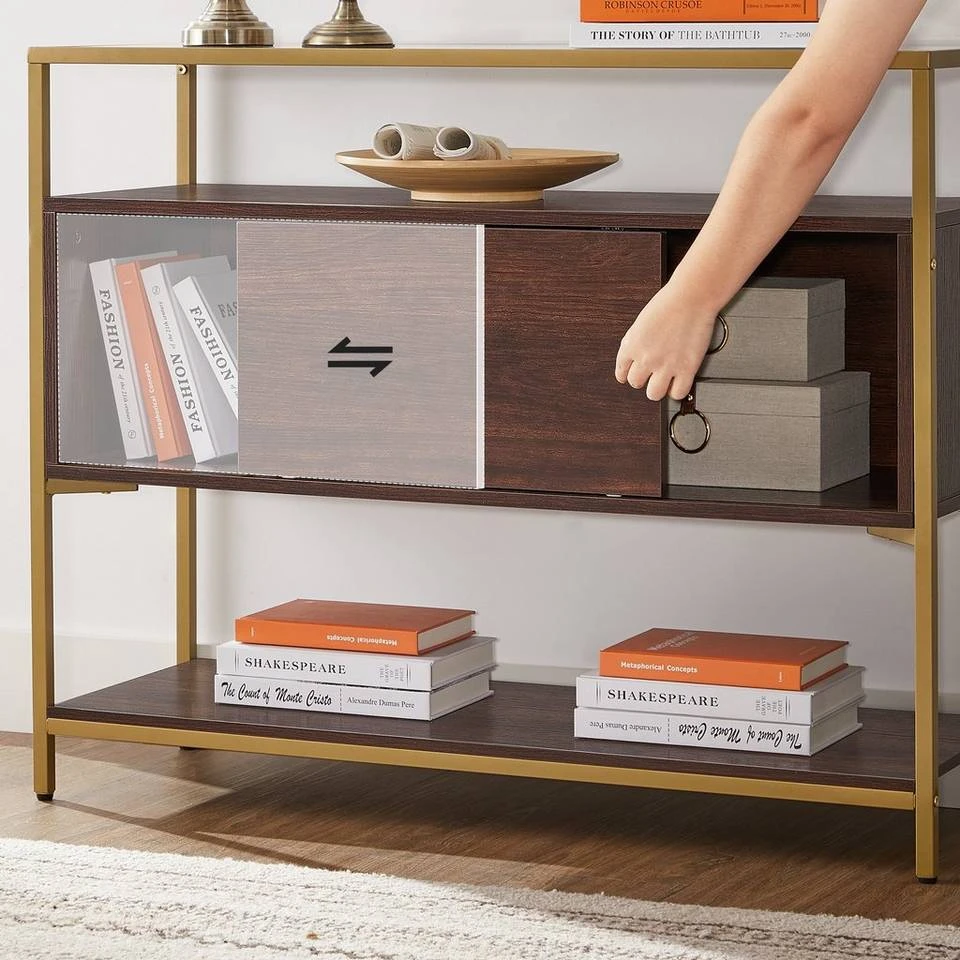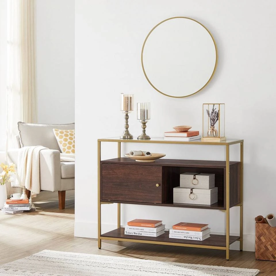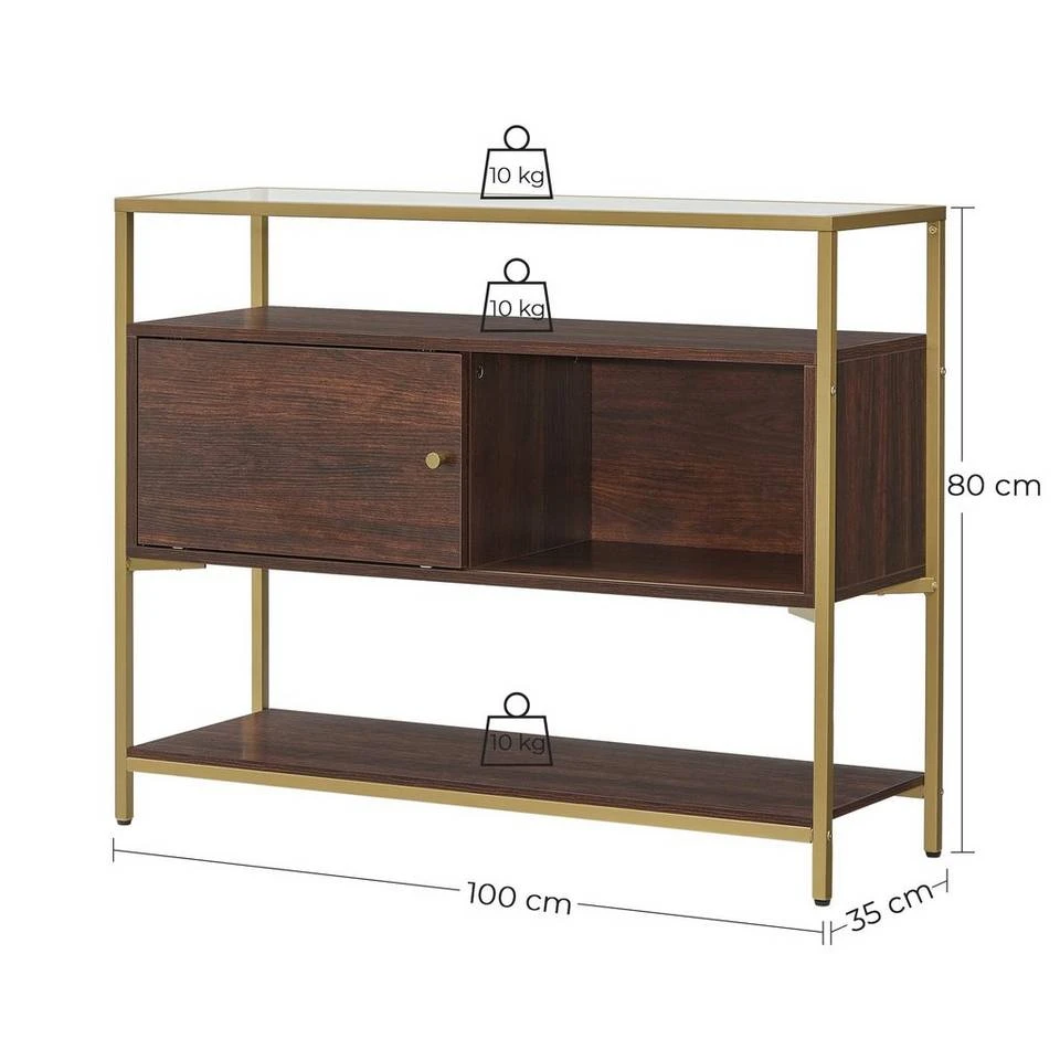 VASAGLE Konsolentisch »LSC016B24«, Beistelltisch, Flurtisch, mit Schiebetür, Schokoladenbraun-Mattgold