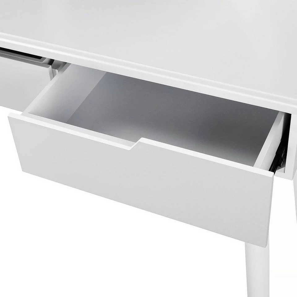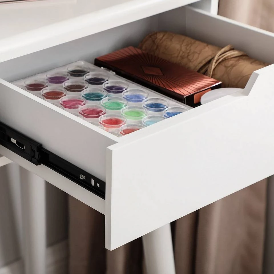 - Damit kein Chaos aus Cremes, Kosmetika sowie Schmuck entsteht, verfügt dieser Schminktisch über eine große Tischoberfläche sowie 2 geräumige Schubladen auf Schienen