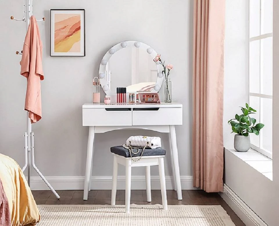 Wenn Sie am Morgen vor einem Berg von Hygieneartikeln, Make-up, Schminkpinseln und anderen Utensilien stehen, wird es Zeit, Ordnung zu schaffen! Mit diesem beleuchteten Frisiertisch können Sie nicht nur alle wichtigen Accessoires ordnen. Sie erhalten auch einen eigenen Beautybereich, der aus einem Hollywoodfilm entsprungen zu sein scheint.