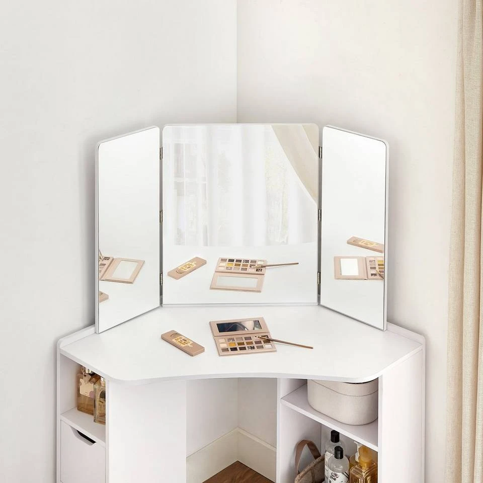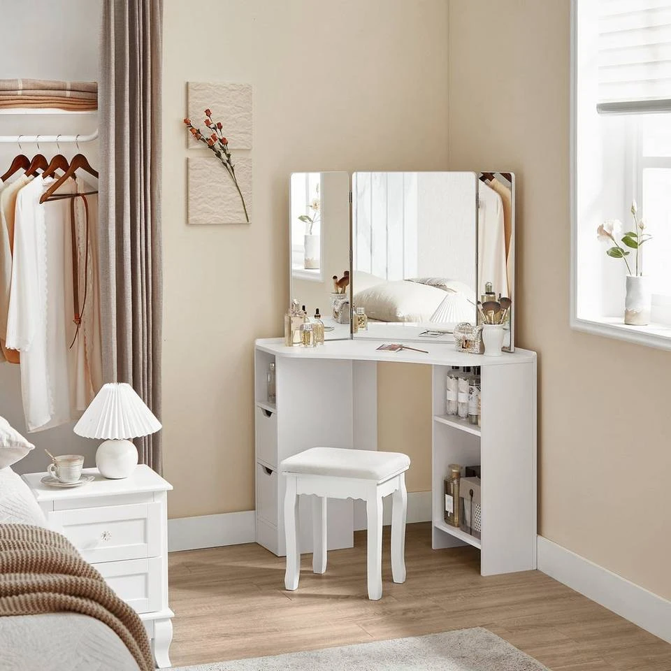 - In Ihrem Zimmer zählt jeder Zentimeter, ignorieren Sie also nicht die leere Ecke – Dieser Eckschminktisch mit seinem einzigartigen Design passt dort wunderbar hin