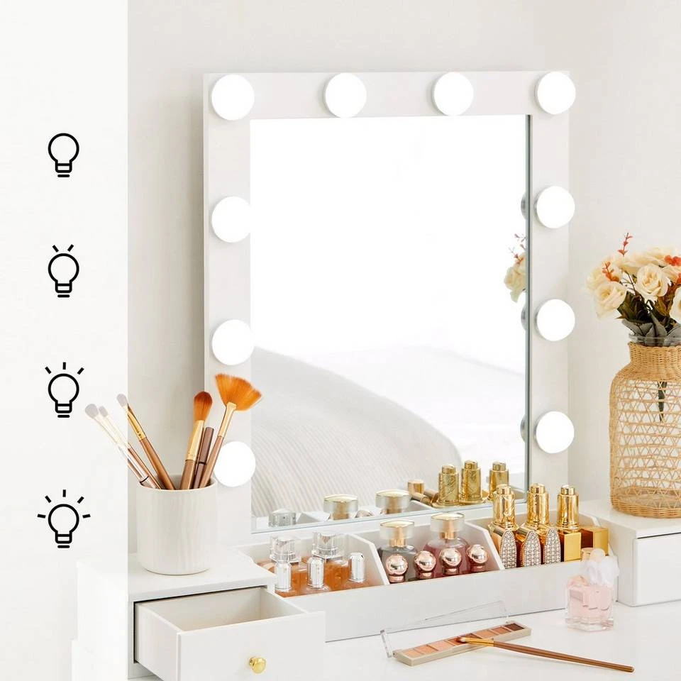 Verabschieden Sie sich von Make-up-Fehlern, die beim Schminken im Dunkeln nicht auffallen, aber beim Ausgehen leicht bemerkbar sind. 10 Glühbirnen, die den Spiegel umgeben, beleuchten Ihr Gesicht – Zaubern Sie ein perfektes Make-up!