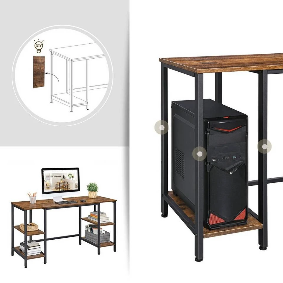 - WAS SIE BEKOMMEN? Einen Schreibtisch mit 4 Regalböden und großer Tischoberfläche, Montagezubehör. Psst, dieser Schreibtisch ist Teil unserer faszinierenden ALINRU-Kollektion!