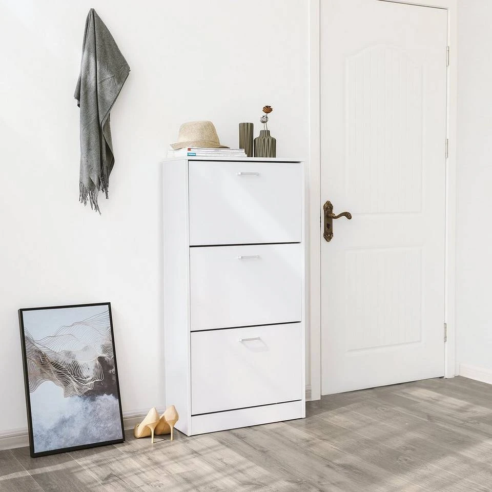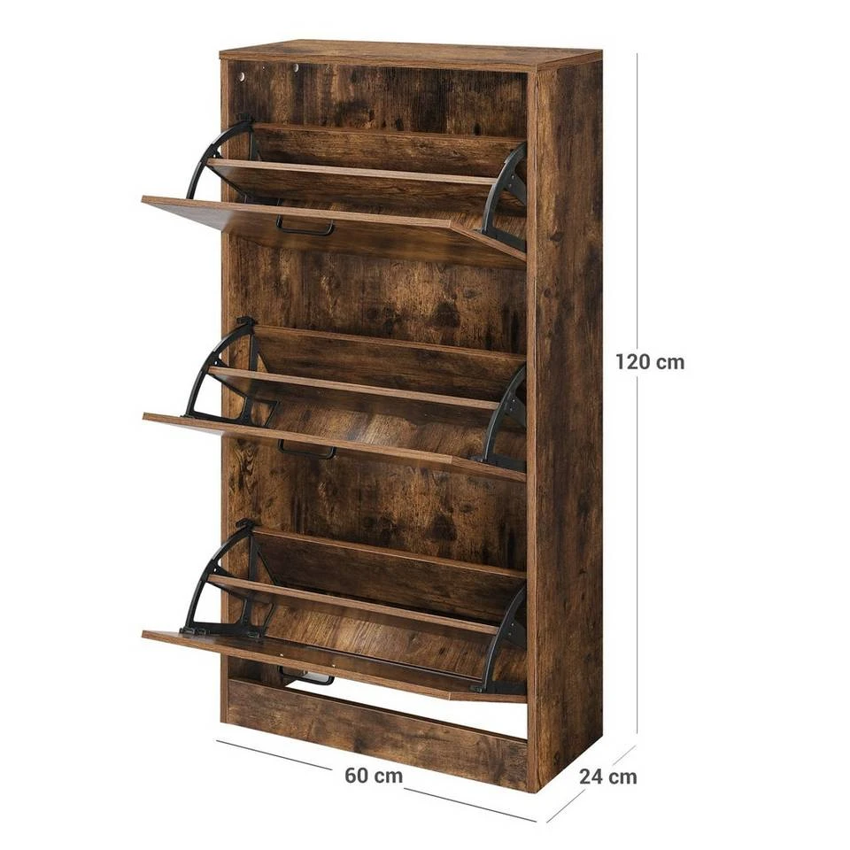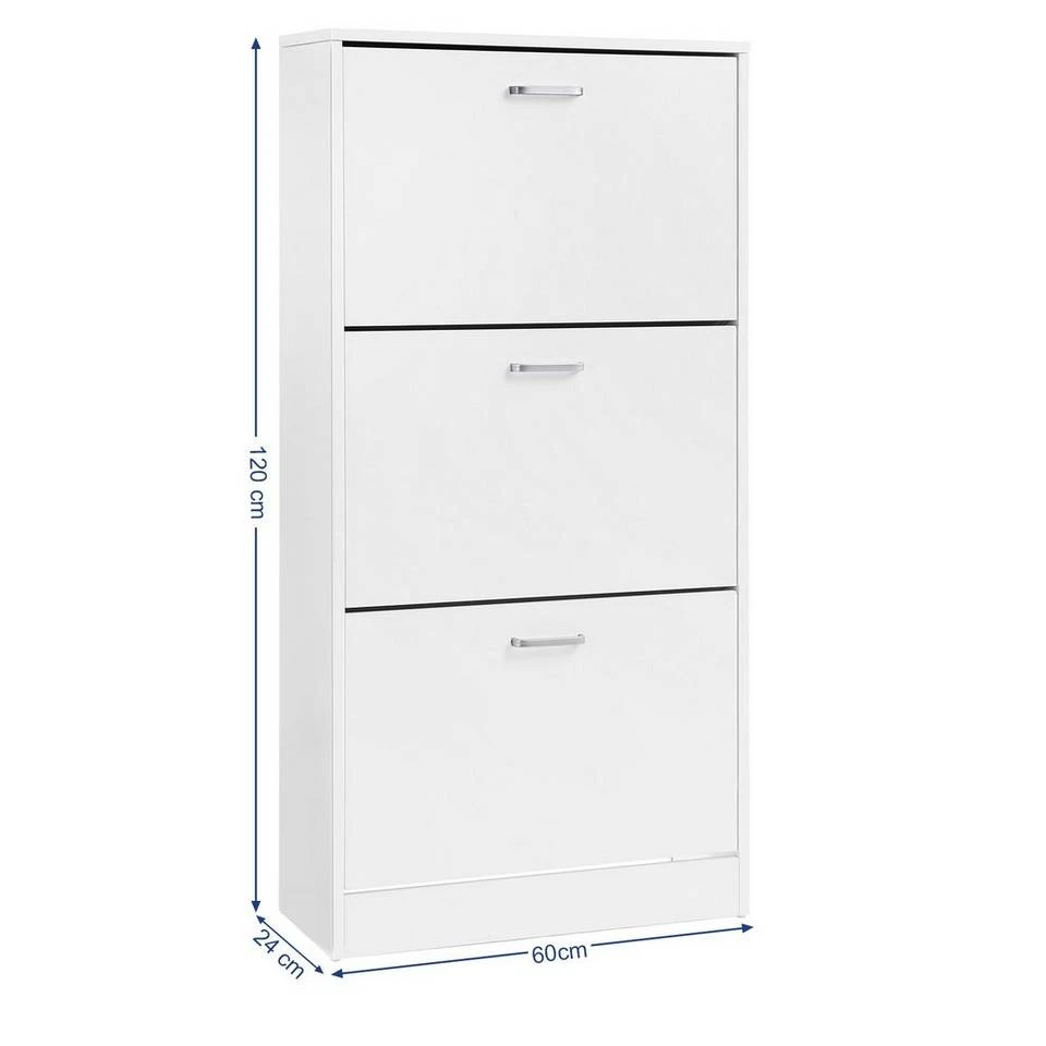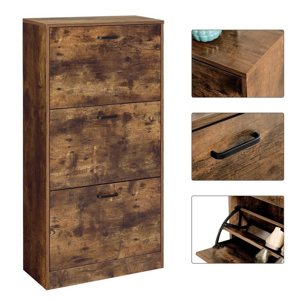 VASAGLE Schuhschrank »LBC03« Schuhregal mit 3 Klappen und Ebenen, perfekt für schmale Flure, 60 x 24 x 120 cm (L x B x H) Eichenfarben, Vintage, Weiß