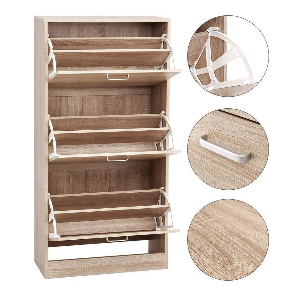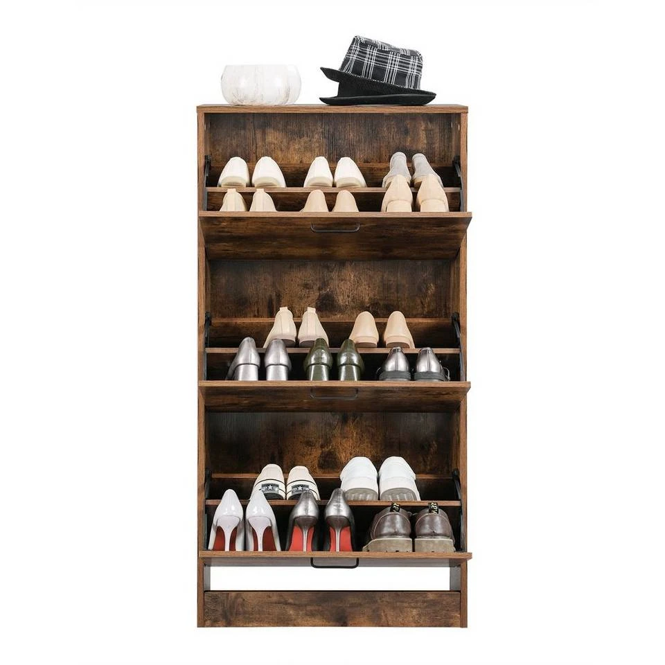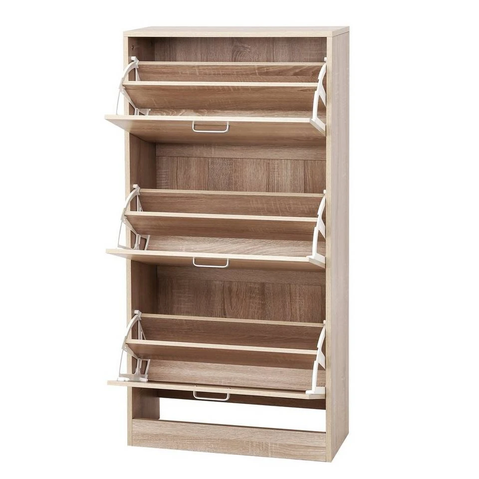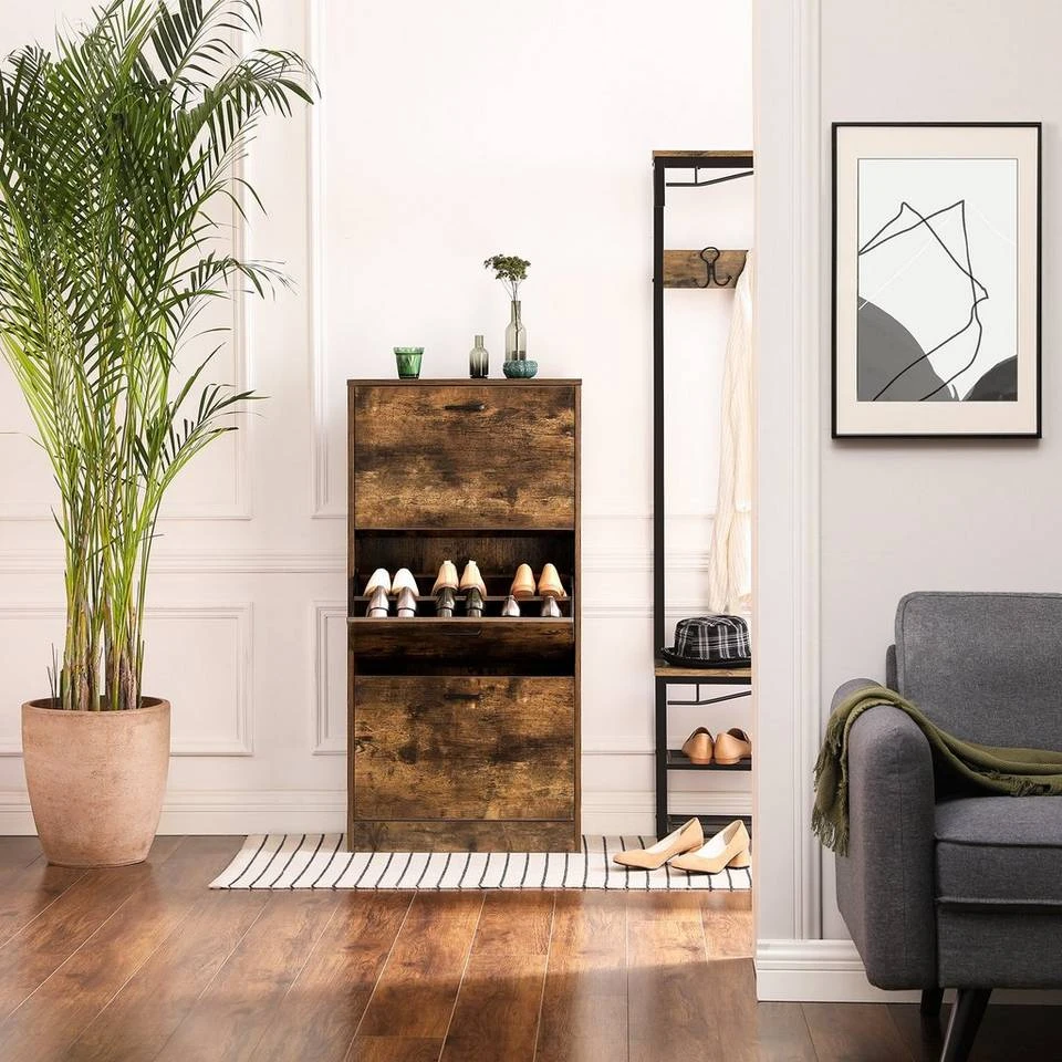 VASAGLE Schuhschrank »LBC03« Schuhregal mit 3 Klappen und Ebenen, perfekt für schmale Flure, 60 x 24 x 120 cm (L x B x H) Eichenfarben, Vintage, Weiß