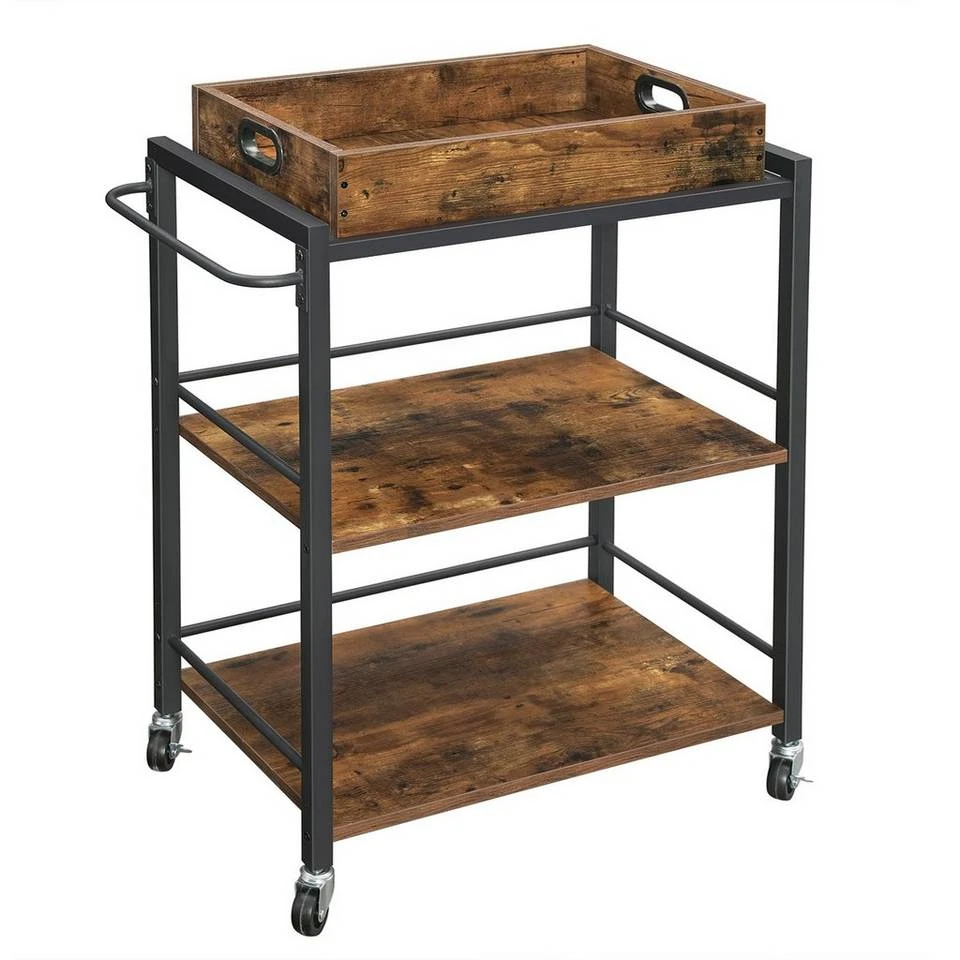 - GASTFREUNDSCHAFT AUF HÖCHSTEM NIVEAU: Ihr Tisch ist zu klein, dann greifen Sie auf diesen Küchenwagen in romantischem Vintage-Braun und elegantem Schwarz zurück