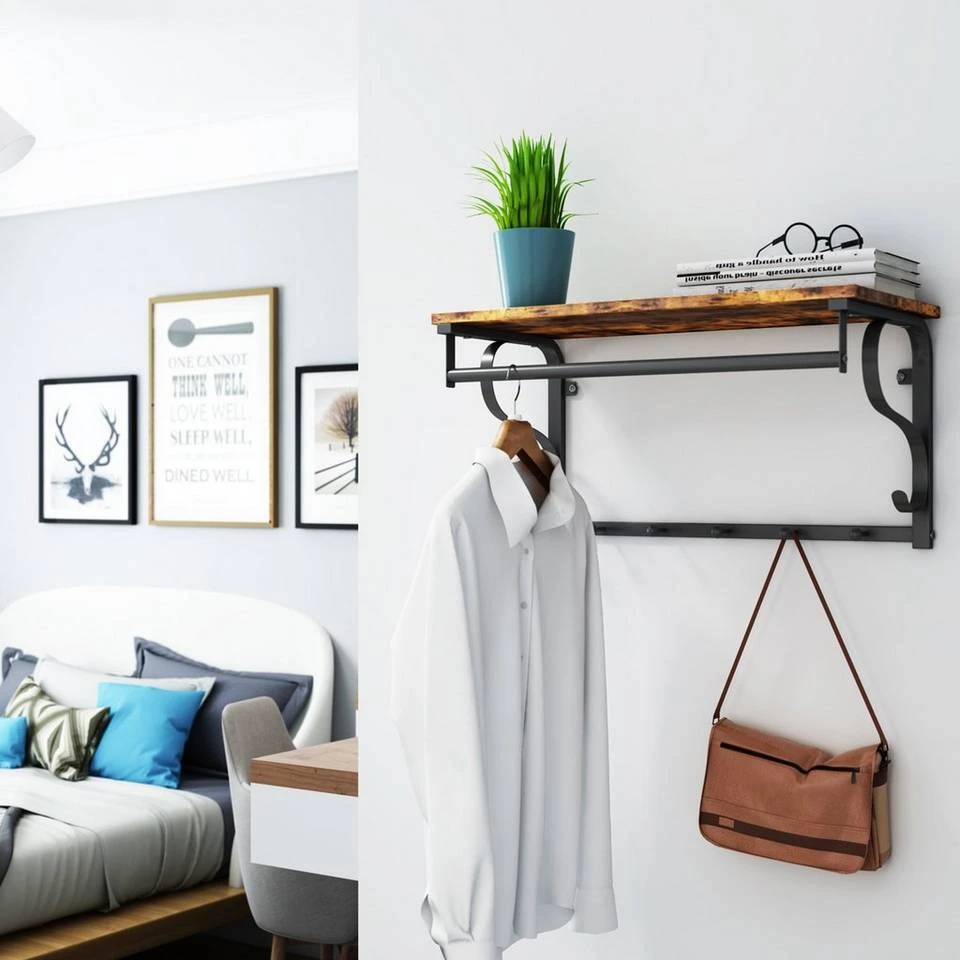 VASAGLE Wandgarderobe »LCR12BX LCR11BX«, Wandregal mit 5 Haken und Ablage, vintage